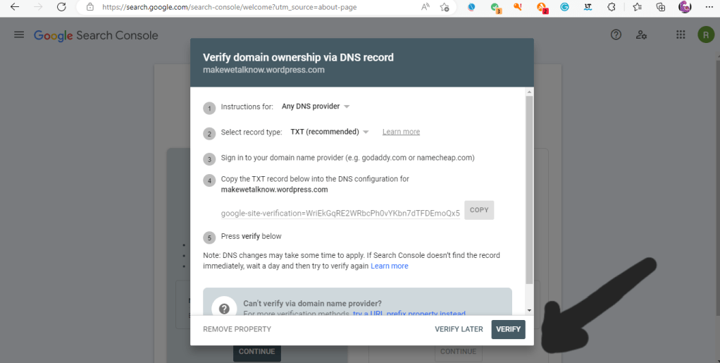 Step 3: Verifying Domain Ownership with WordPress as DNS Provider