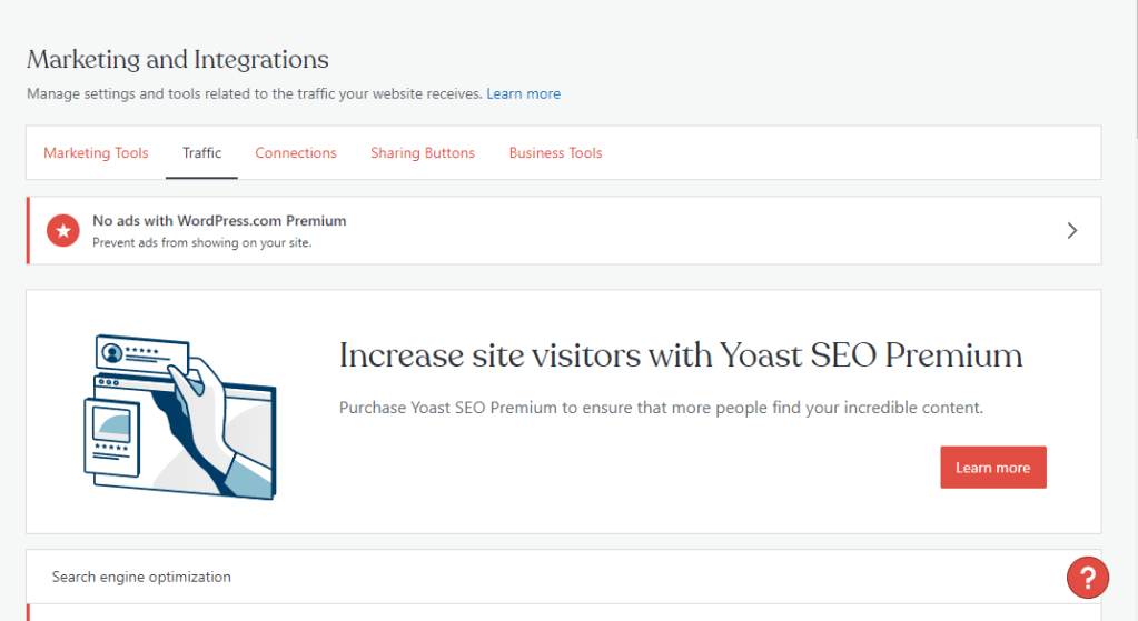 2. Next, click on Traffic and if you scroll down below, you will find your XML Sitemaps